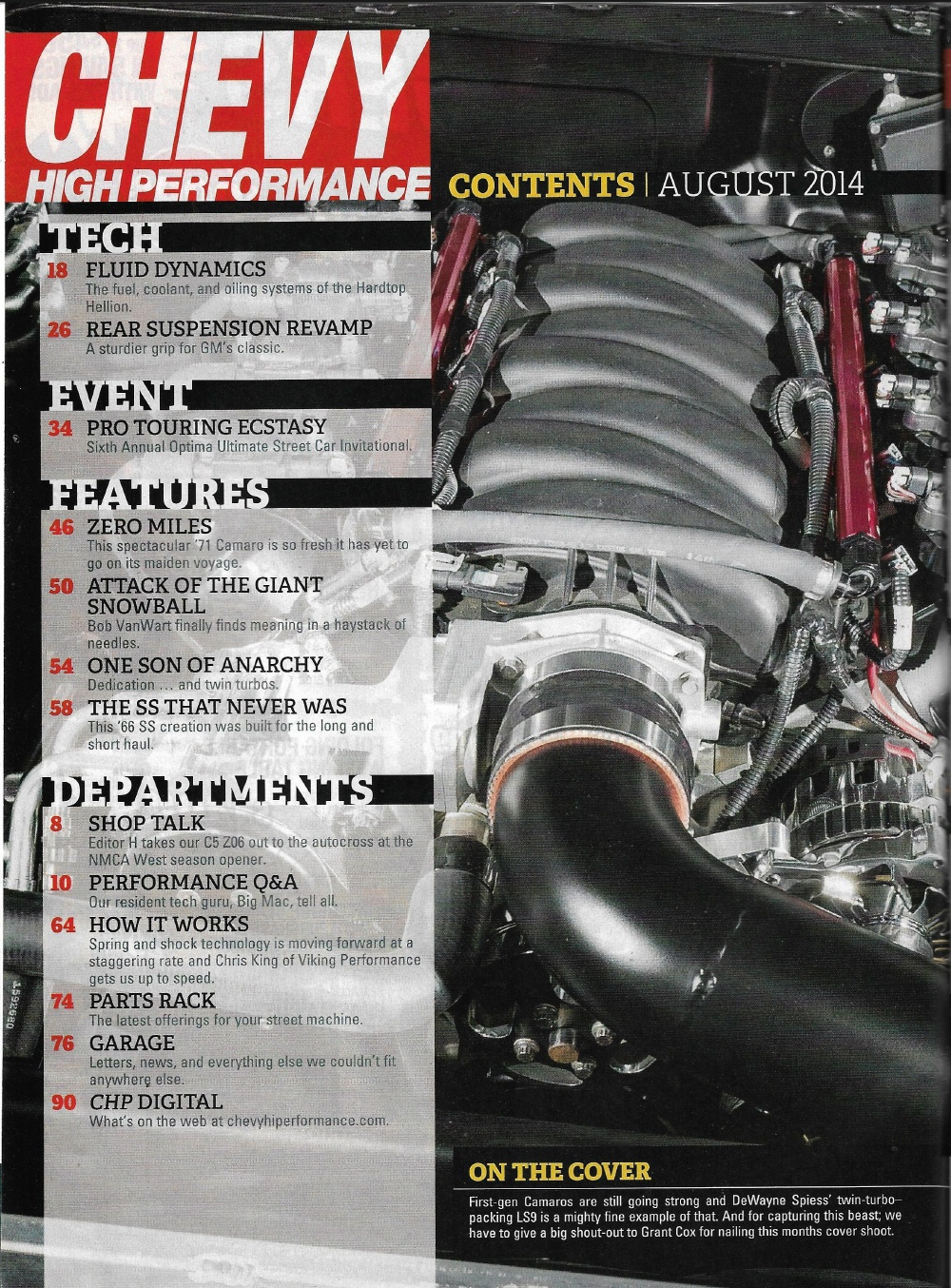 Reviews CHEVY HIGH PERFORMANCE 2014 AUG - ;71 CANARIM VAB WART, '66 SS, SPRING & SHOCK