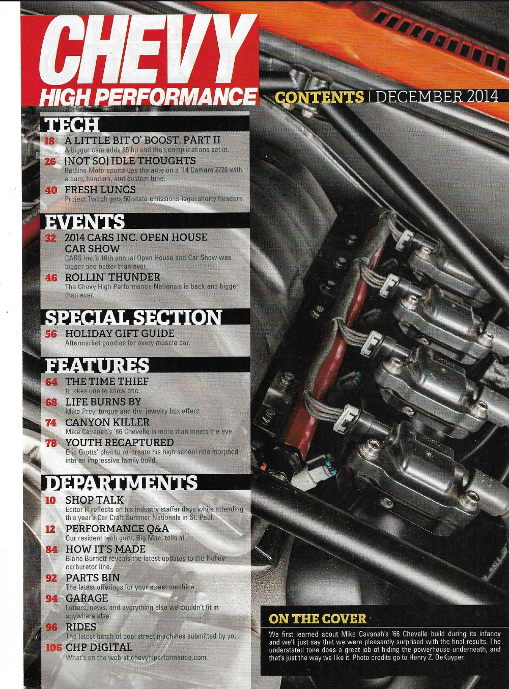 CHEVY HIGH PERFORMANCE 2014 DEC - HOLLEY CARBS, C5 HEADERS, 698 HP LS3,CARS INC