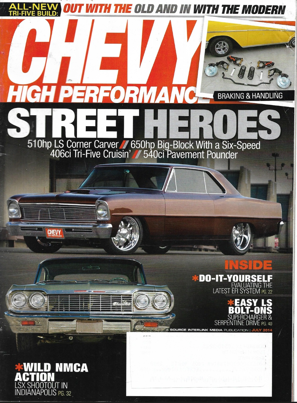 CHEVY HIGH PERFORMANCE 2014 JULY - EASY LS BOLT-ONS, NMCA ACTION, BRAKES&HANDLE