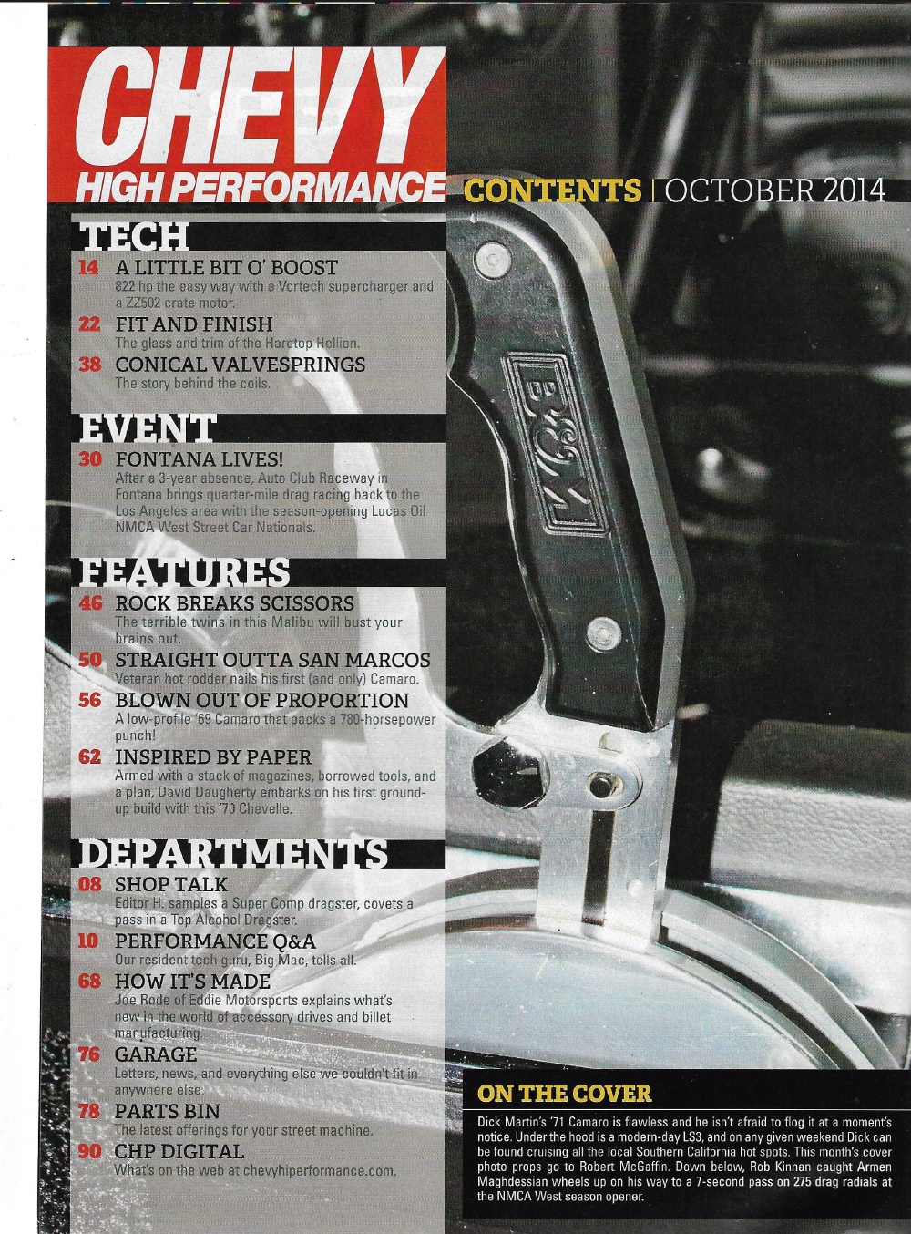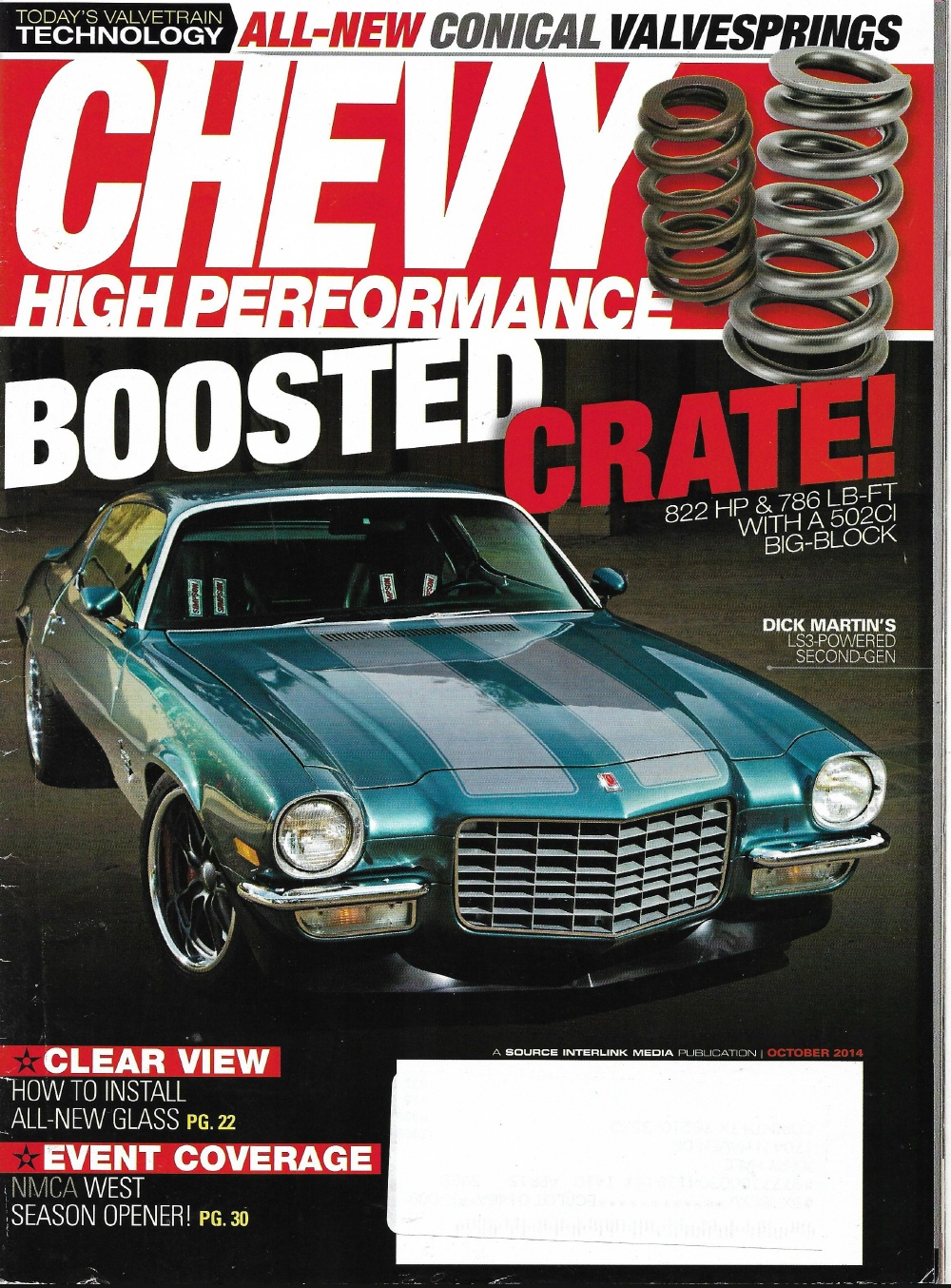 CHEVY HIGH PERFORMANCE 2014 OCT - BOOSTED CRATE 502CI, MARTINS LS3 2 GEN, GLASS