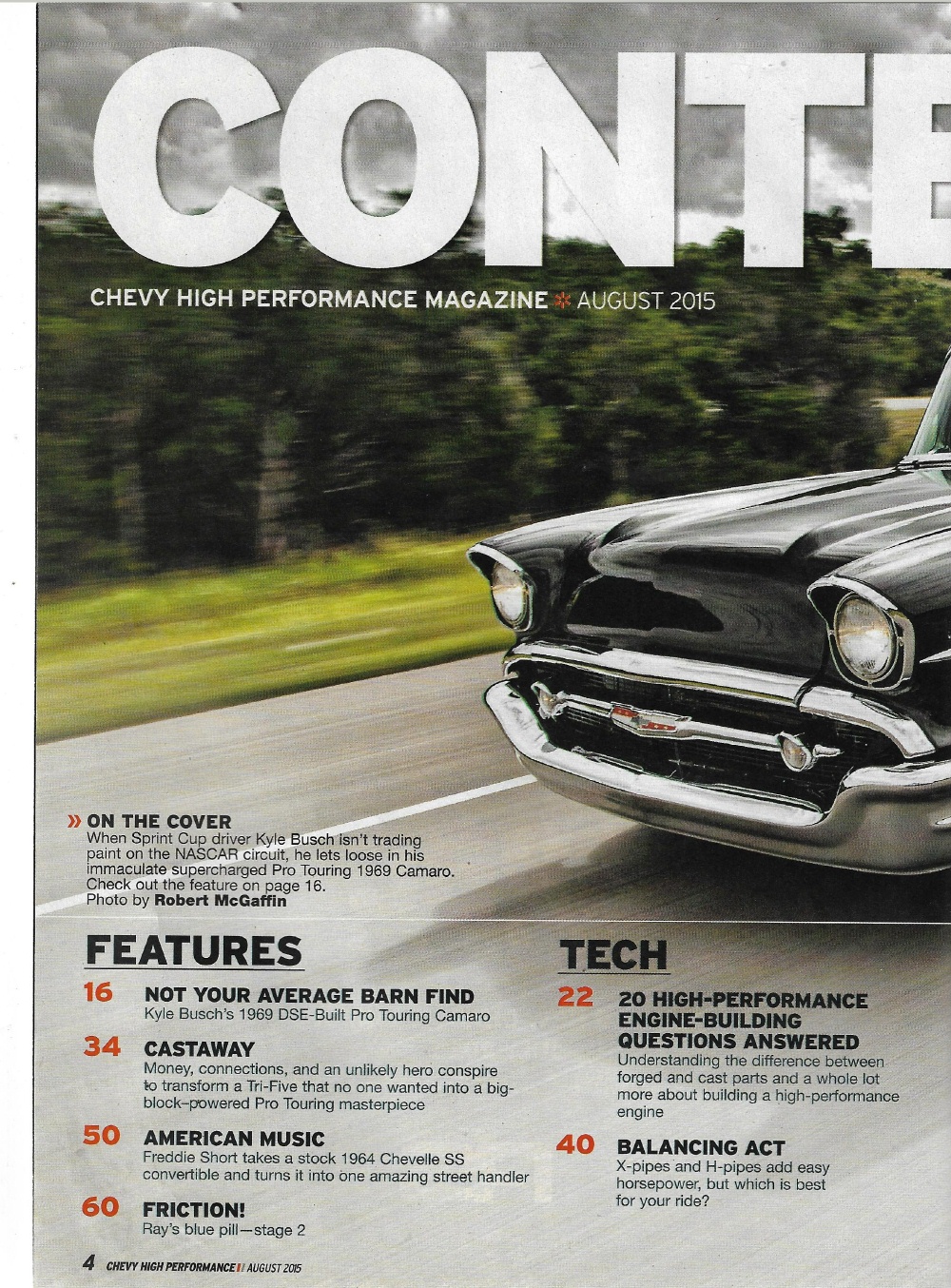 CHEVY HIGH PERFORMANCE 2015 AUG - BUSCH'S '69 CAMARO, LS ROCKER ARM UPGR, TIPS