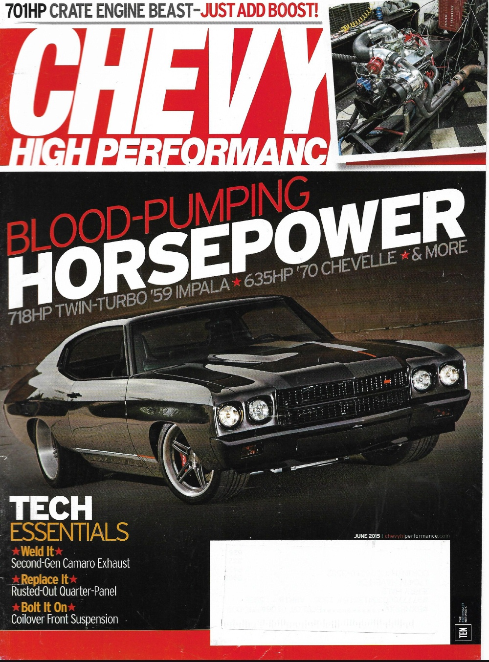 CHEVY HIGH PERFORMANCE 2015 JUNE - '70 CHEVELLE,'59 IMPALA,2ND G CAMARO EXHAUST
