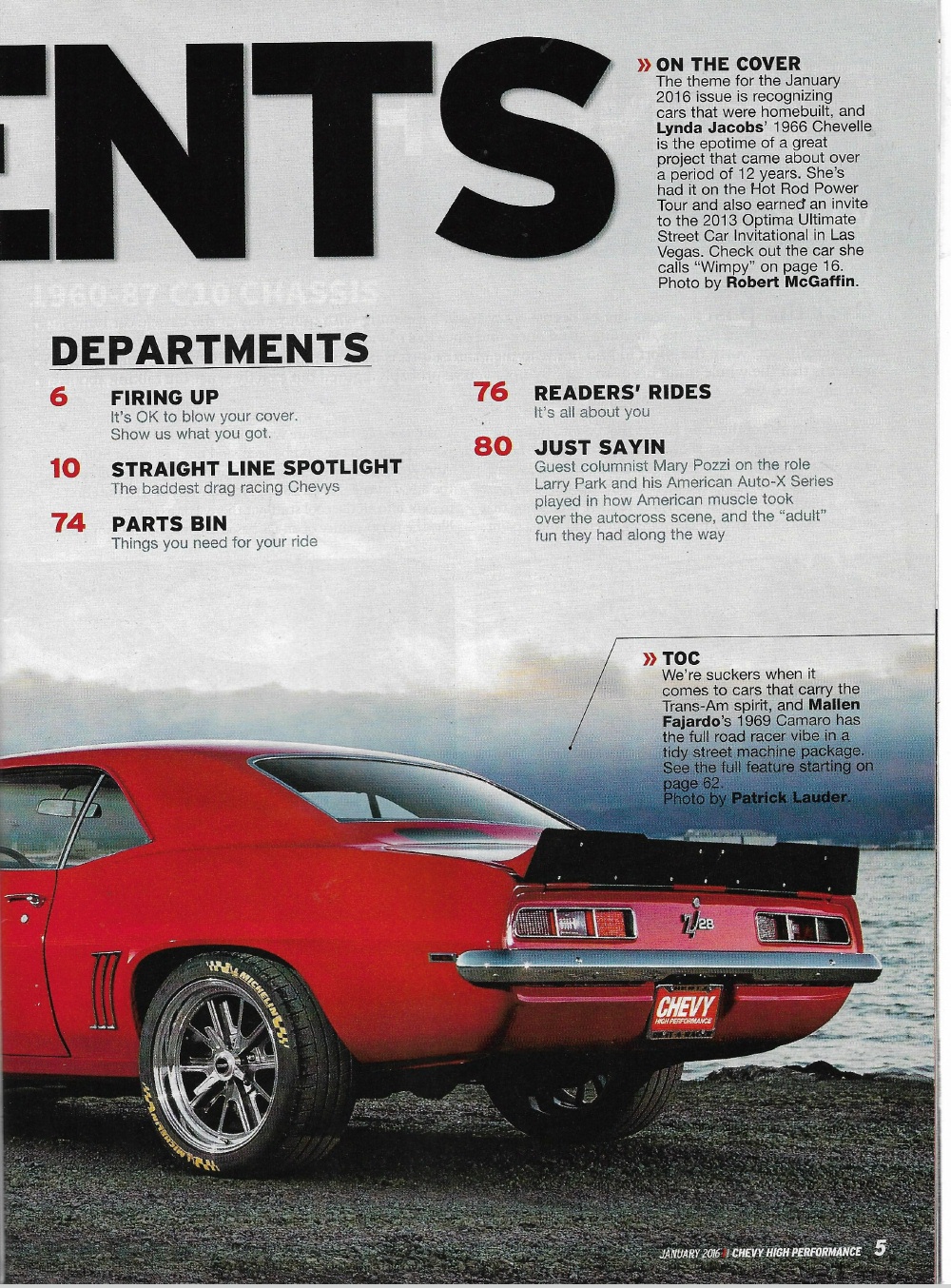 Reviews CHEVY HIGH PERFORMANCE 2016 JAN - JACOBS' '66 CHEV SS CONV, GUAGES, '62 NOVA