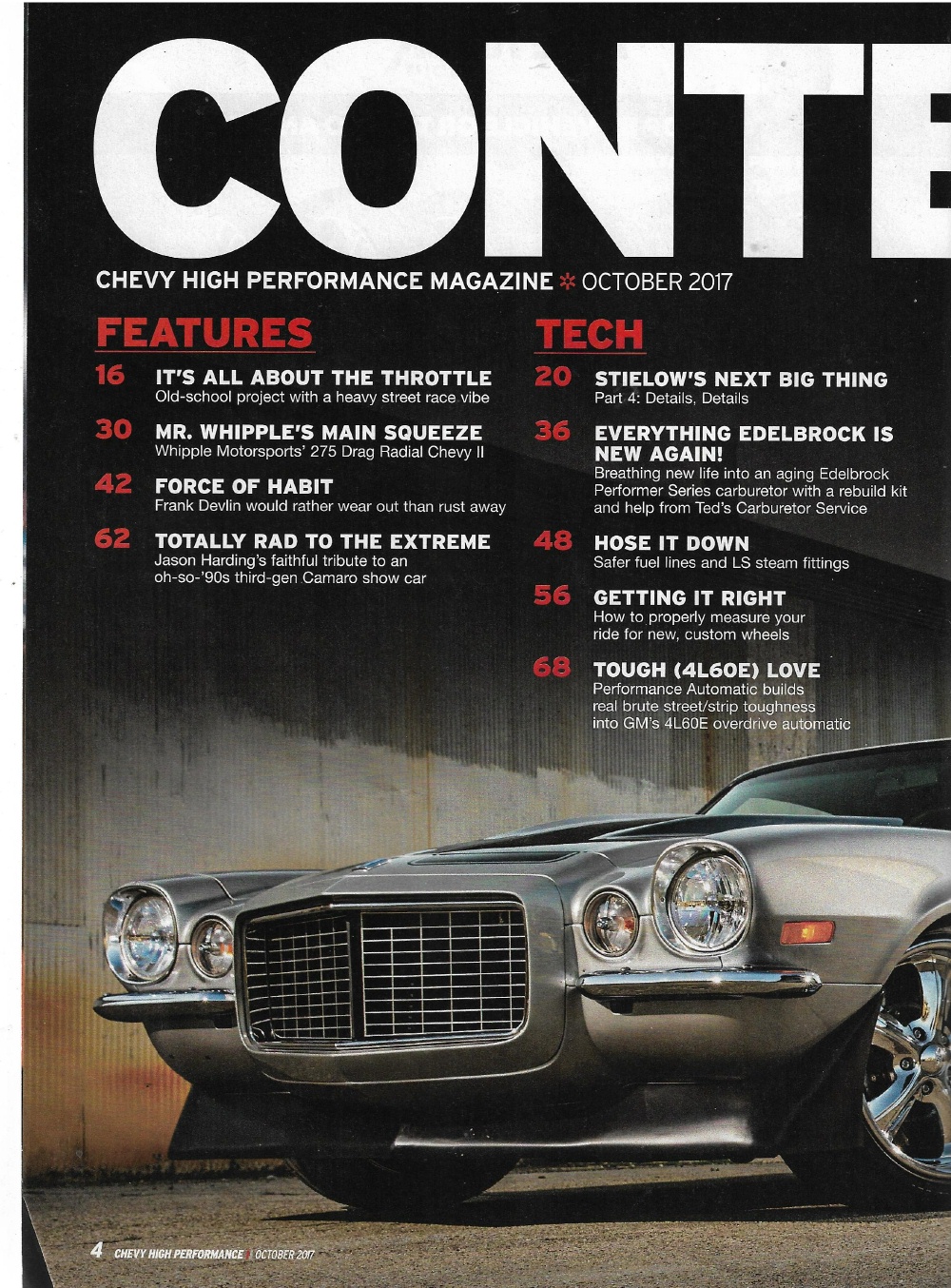 CHEVY HIGH PERFORMANCE 2017 OCT - 781 HP '70 CAMARO, FUEL LINES, 4L60E TRANS*