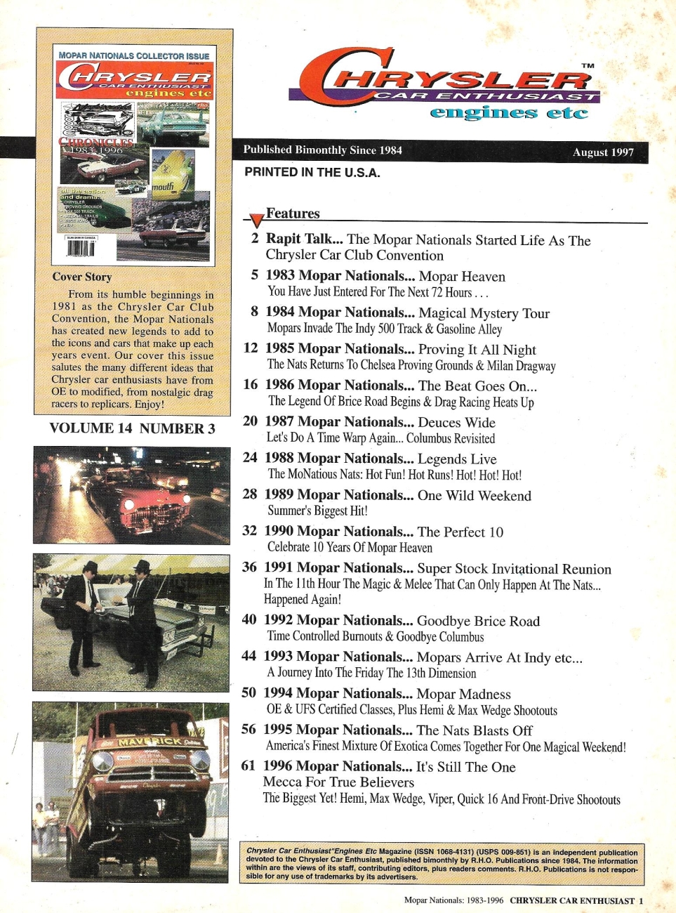 Reviews CHRYSLER CAR ENTHUSIAST ENGINES ETC 1997 AUG - '83-96 CHRONICLES, AT THE TRACKS*