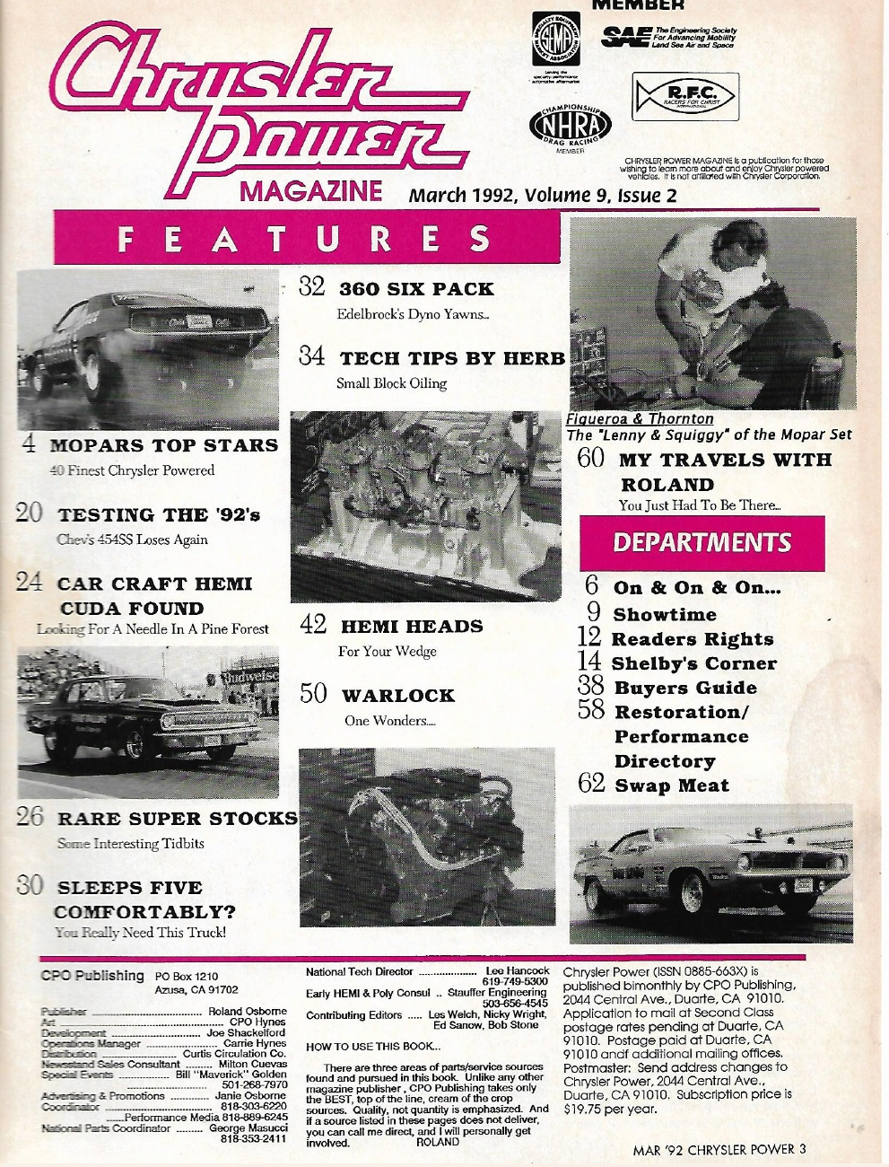 CHRYSLER POWER 1992 MAR - MACHINE SHOP BASICS, DYNO 360 6 PACK, PROJ DOOLIE