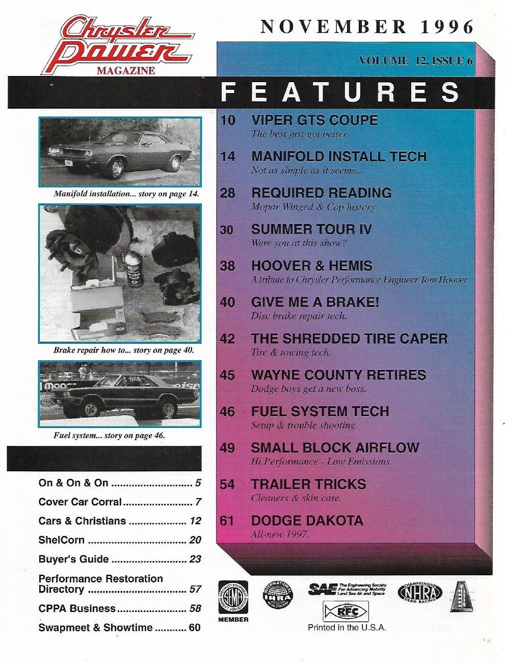 CHRYSLER POWER 1996 NOV - HOOVER V HEMIS, DISC BRAKES, MANIFOLDS, VIPER COUPE
