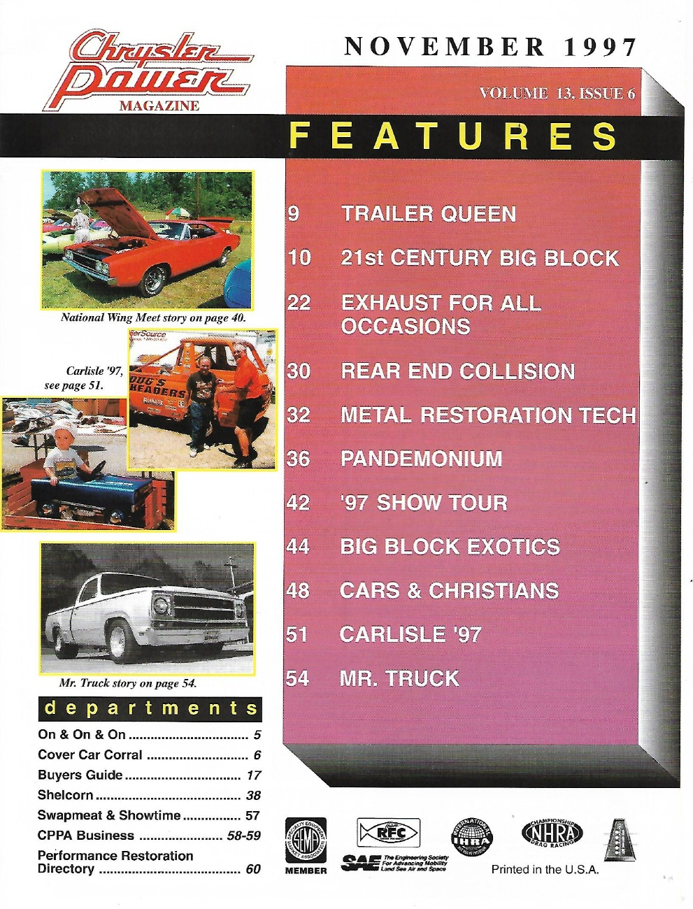 Reviews CHRYSLER POWER 1997 NOV - HI-FLOW EXHAUST, INDY BIG BLOCK, SUMMER TOUR V PT 1