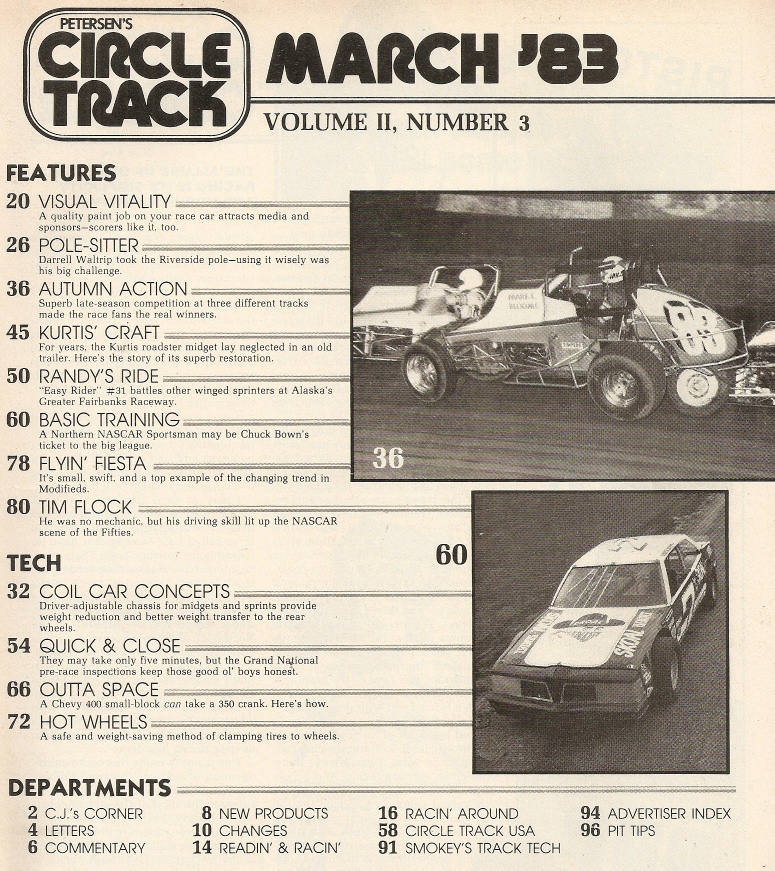 Reviews CIRCLE TRACK 1983 MAR - COIL-OVER SCIENCE, 57 KURTIS ROADSTER MIDGET, BOWN
