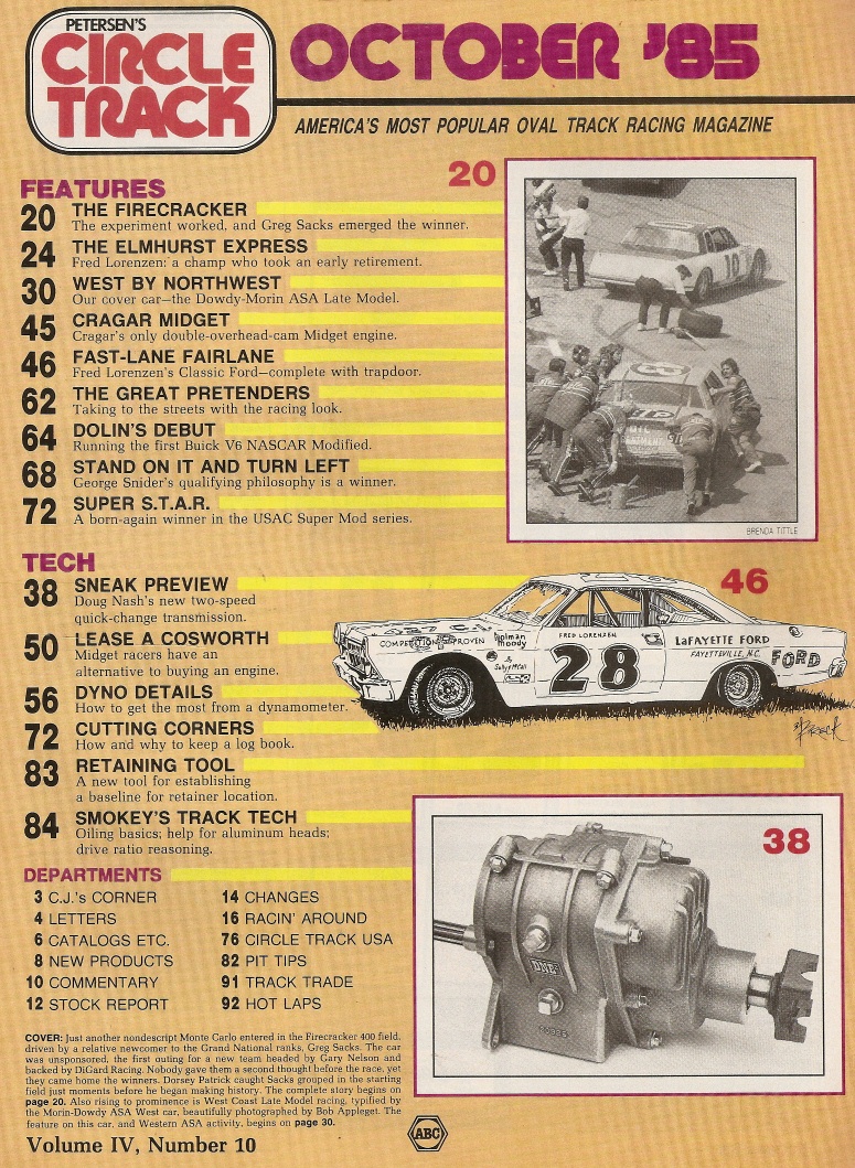 Reviews CIRCLE TRACK 1985 OCT - FIRECRACKER, LORENZEN, BUICK V6, SUPER STAR RACING