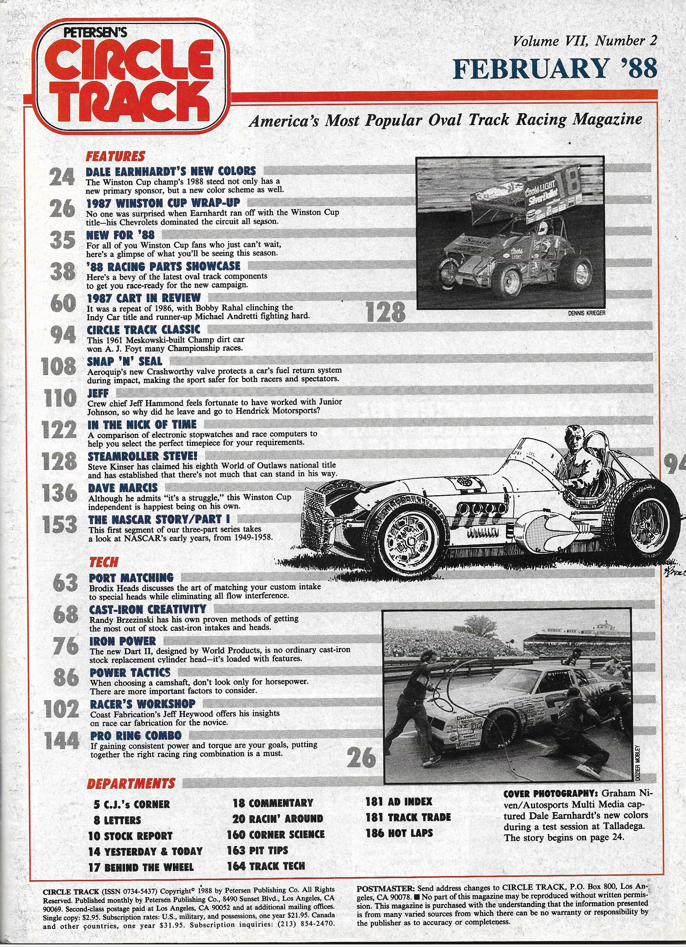Reviews CIRCLE TRACK 1988 FEB - WORLD OF OUTLAWS,NASCAR HISTORY PT I, '87 SEASON REVIEW