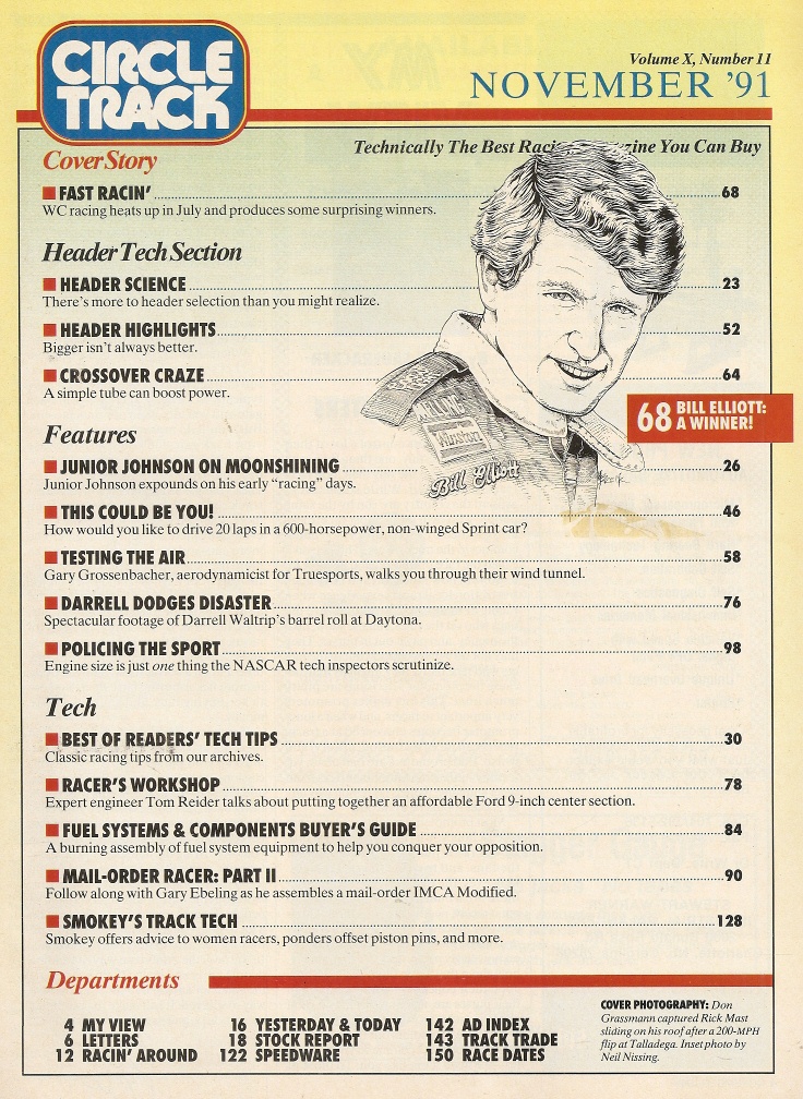 Reviews CIRCLE TRACK 1991 NOV - Jr JOHNSON & MOONSHINE, HEADER TECH, BILL ELLIOTT