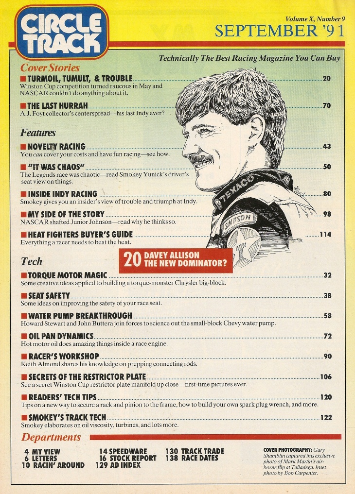 Reviews CIRCLE TRACK 1991 SEPT - OIL PAN DYNAMICS, DAVEY ALLISON, JUNIOR JOHNSON