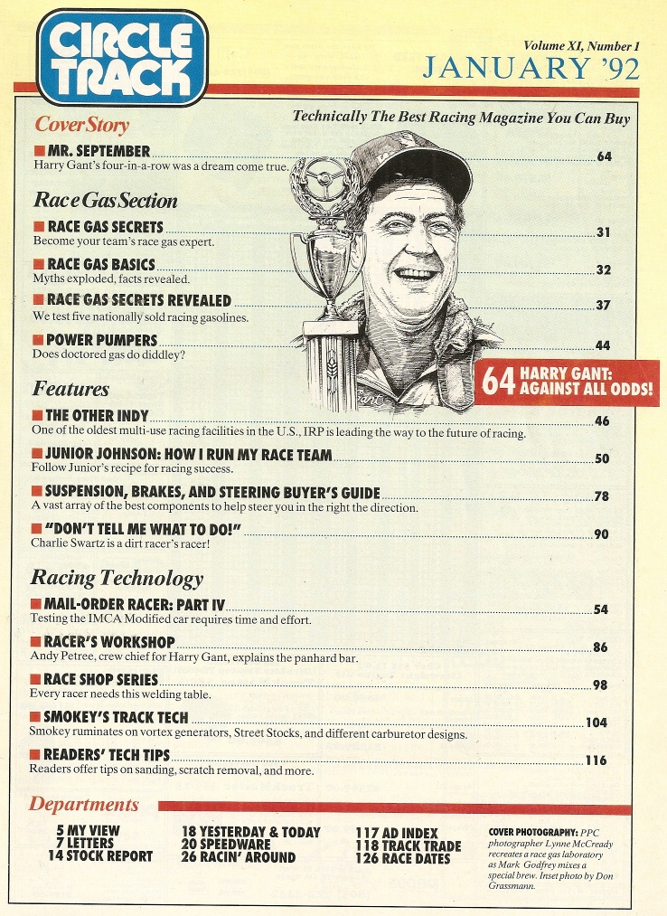 Reviews CIRCLE TRACK 1992 JAN - RACING FUELS, INDY RACE PARK, JUNIOR JOHNSON, GANT