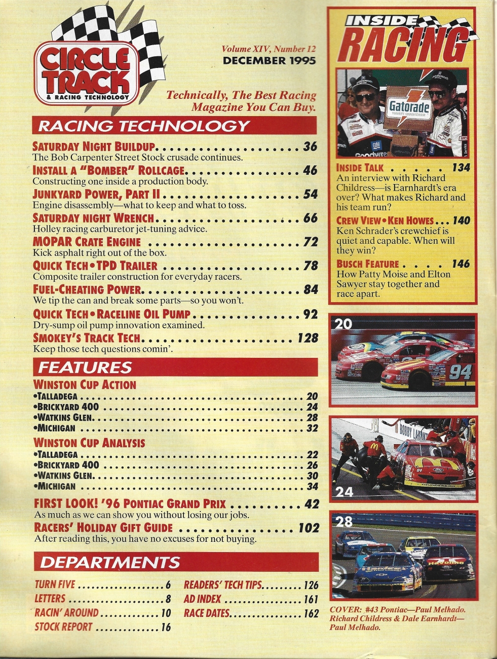 Reviews CIRCLE TRACK 1995 DEC - '96 PONTIAC'S CAR, BOMBER ROLLCAGE, MOPAR CRATE TEST