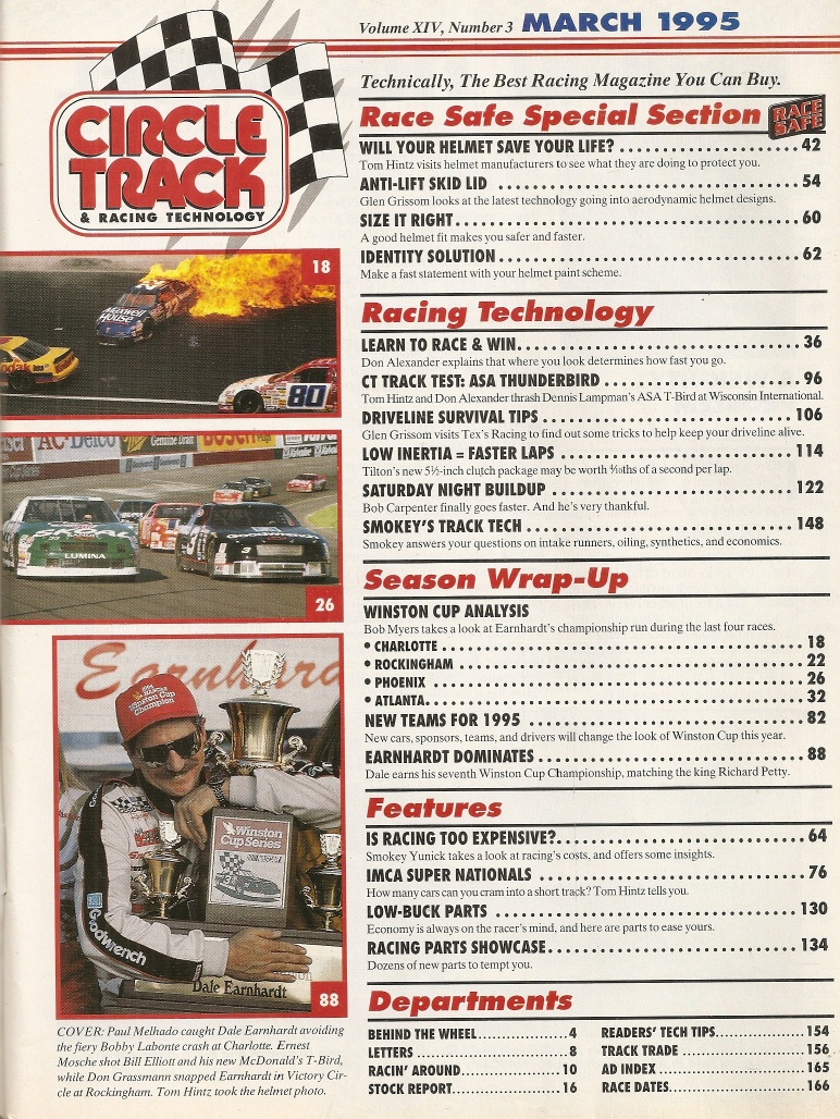 Reviews CIRCLE TRACK 1995 MAR - SEASON REVIEW, EARNHARDT WINS BIG, ASA T-BIRD TEST