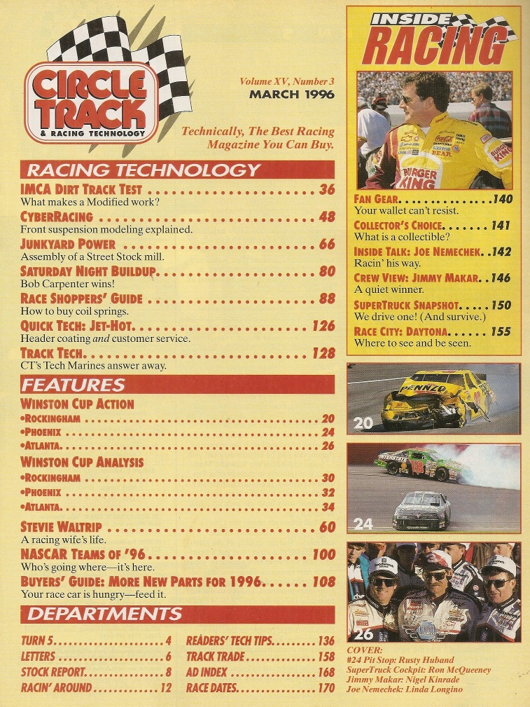 Reviews CIRCLE TRACK 1996 MAR - IMCA DIRT CAR SETUP, COIL SPRING ART, CARPENTER