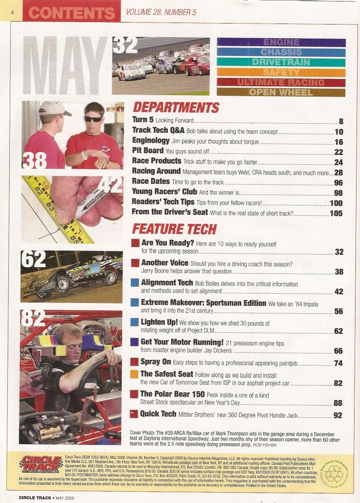 Reviews CIRCLE TRACK 2009 MAY - JAY DICKENS ON ENGINES, 84 IMPALA SPORTSMAN BUILD-UP