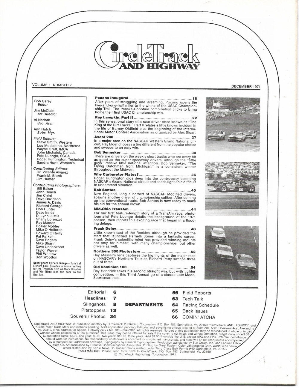 Reviews CIRCLE TRACK AND HIGHWAY 1971 DEC - BOB SANTOS, MICHIGAN'S FLYING DUTCHMAN*