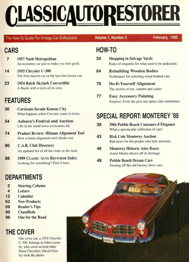 Reviews CLASSIC AUTO RESTORER 1990 FEB - METROPOLITAN, 54 SKYLARK, CHRYSLER C-300