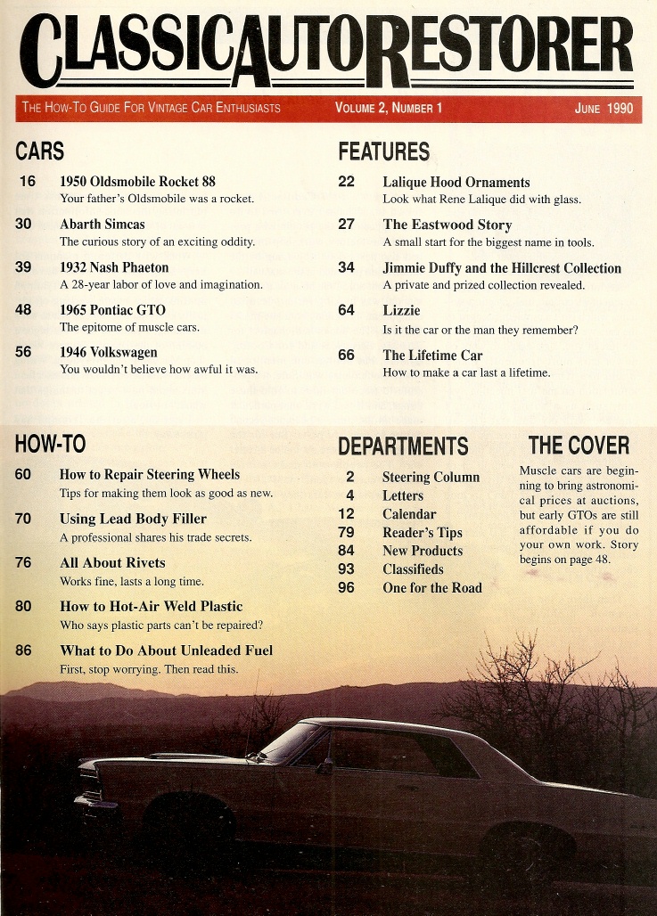 Reviews CLASSIC AUTO RESTORER 1990 JUNE - 50 ROCKET 88, ABARTH SIMCA, 65 GTO, 47 VW