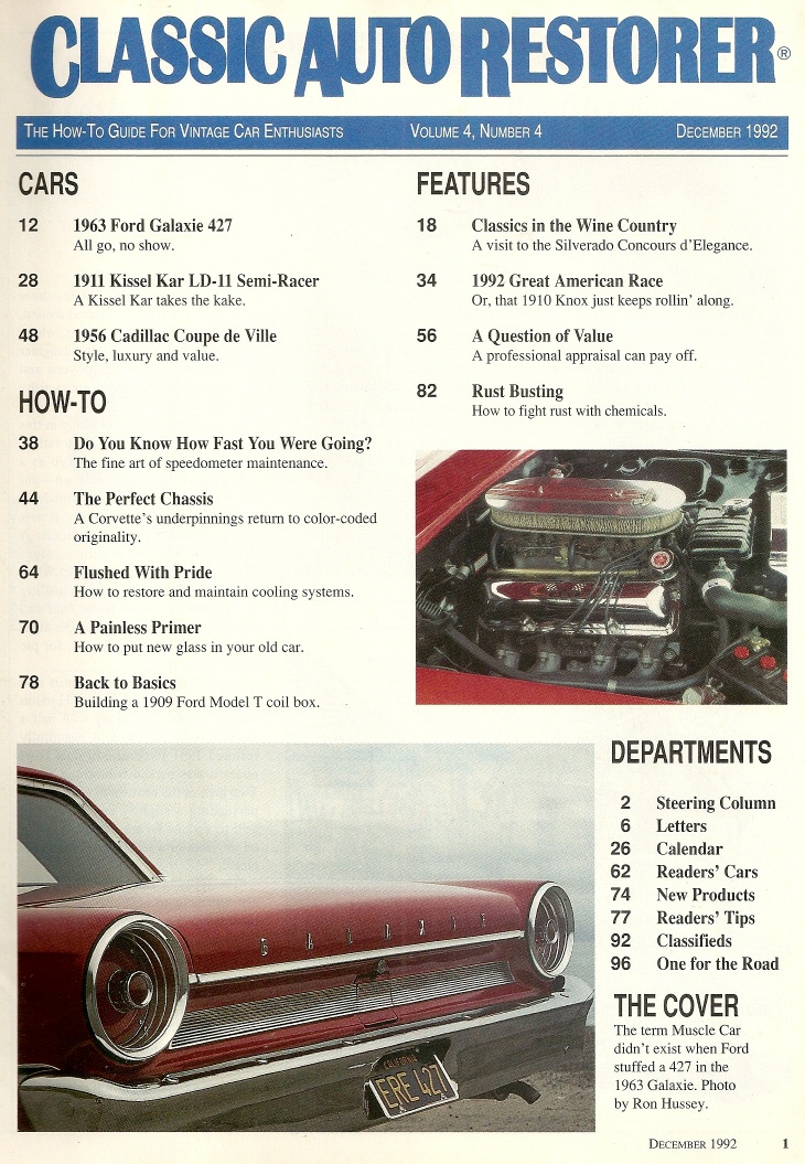 Reviews CLASSIC AUTO RESTORER 1992 DEC - 63 427 GALAXIE, KISSEL SEMI-RACER, 56 de VILLE