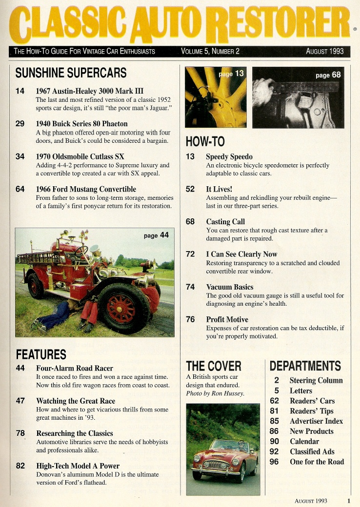 Reviews CLASSIC AUTO RESTORER 1993 AUG - HEALEY 3000-3, 40 BUICK PHAETON, CUTLASS SX