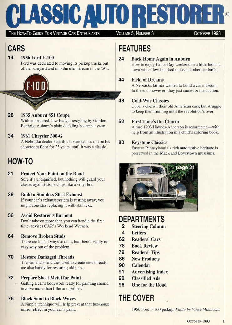 Reviews CLASSIC AUTO RESTORER 1993 OCT - CHRYSLER 300G, 56 F-100, 35 AUBURN 851 COUPE