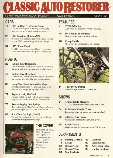 Reviews CLASSIC AUTO RESTORER 1994 FEB - AMX, 38 CADDY V16, 53 LINCOLN CAPRI