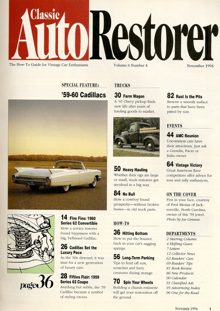 Reviews CLASSIC AUTO RESTORER 1994 NOV - 59-60 CADDY SPECIAL, 41 CHEVY PICKUP, AMCs