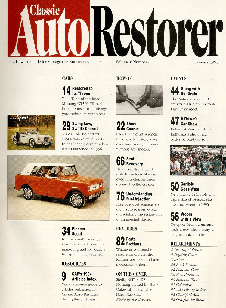 Reviews CLASSIC AUTO RESTORER 1995 JAN - SHELBY GT500KR, VOLVO P1900, SCOUT