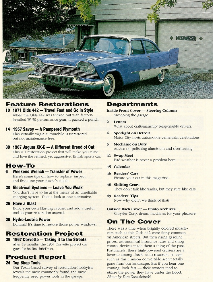 Reviews CLASSIC AUTO RESTORER 1996 JUNE - 71 OLDS 442 W-30, 57 SAVOY, 67 JAGUAR XK-E