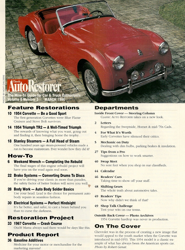 Reviews CLASSIC AUTO RESTORER 1996 MAR - 54 VETTE, 54 TR2, 09 STANLEY STEAMER ROADSTER