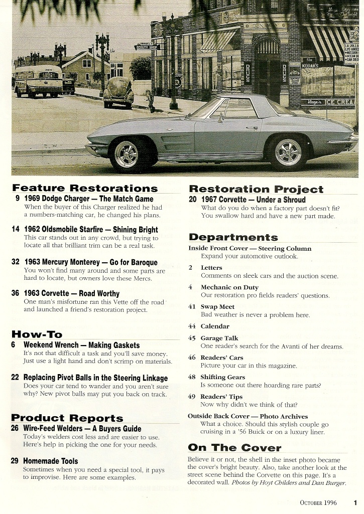 Reviews CLASSIC AUTO RESTORER 1996 OCT - 69 CHARGER, 62 STARFIRE, 63 VETTE & MONTEREY