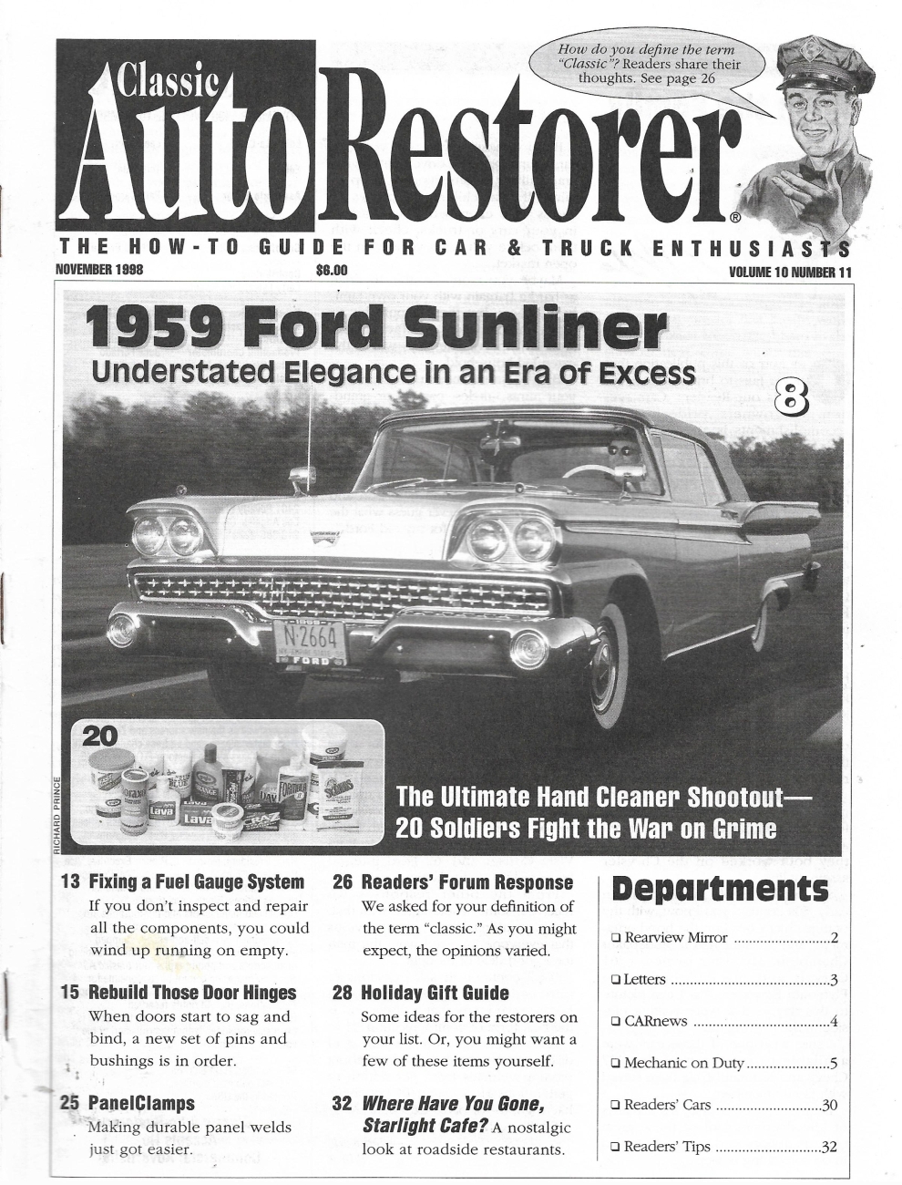 CLASSIC AUTO RESTORER 1998 NOV - '59 SUNLINER, FIXING A FUEL GAUGE SYSTEM