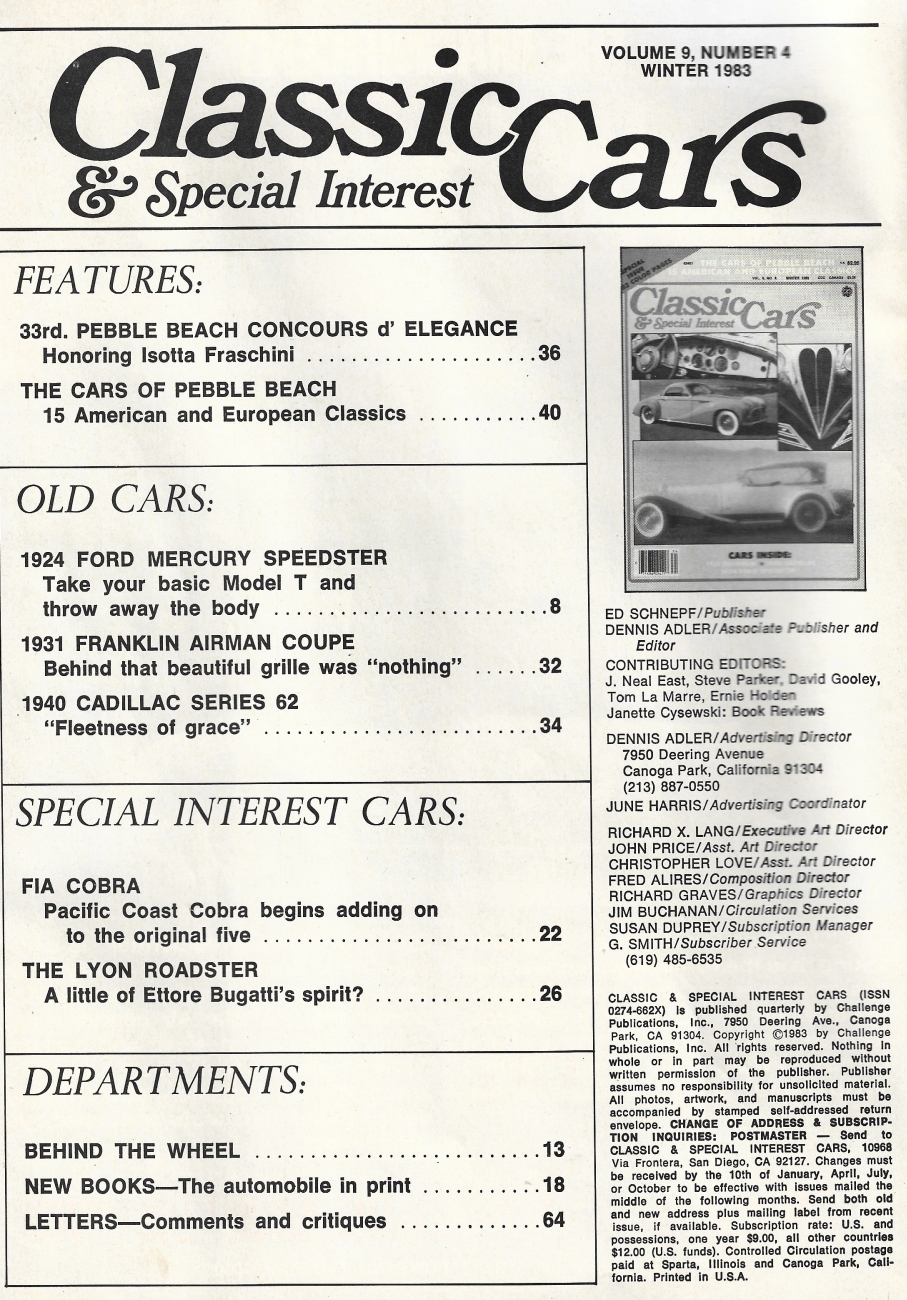 Reviews CLASSIC CARS & SPECIAL INTEREST 1983 WINTER - '31 FRANKLIN, '40 CADILLAC