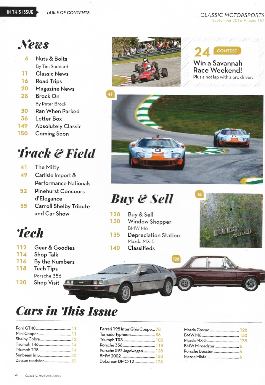 CLASSIC MOTORSPORTS 2016 SEPT - TORONADO TYPHOON PT 8,TRIUMPH PROJ, SHELBY TRIB