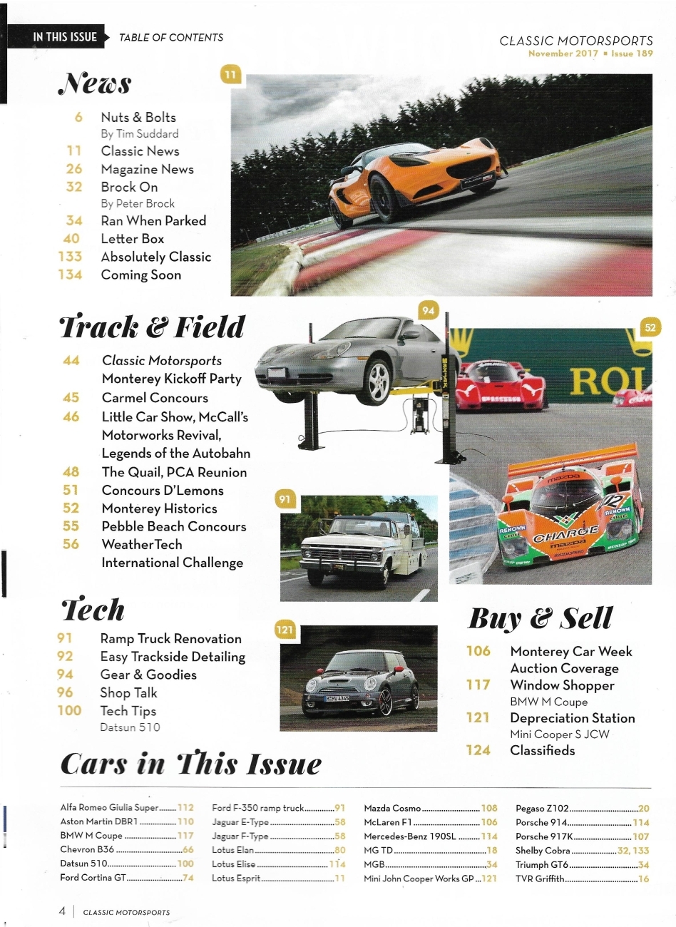 Reviews CLASSIC MOTORSPORTS 2017 NOV - JAGUAR F-TYPE VS E-TYPE, RANDY PROBST, CORTINA