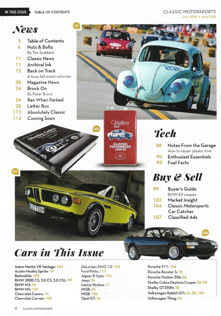 Reviews CLASSIC MOTORSPORTS 2020 JULY - PORSCHE OUTLAW 356, SHELBY MUSTANG,BOXSTER PROJ