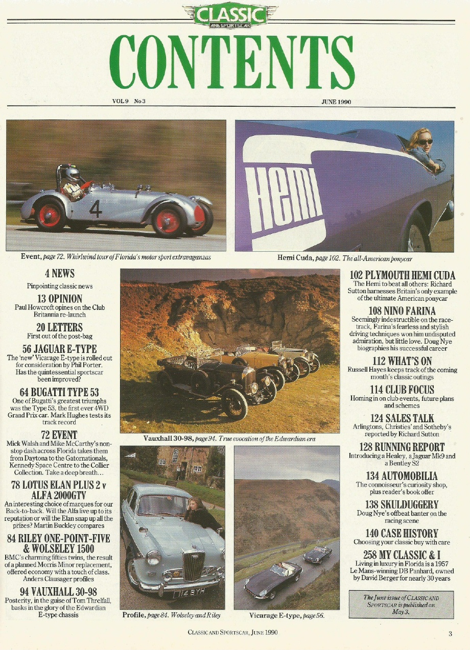 Reviews CLASSIC & SPORTSCAR 1990 JUNE - GTV vs LOTUS+2, VICARAGE E, NINO