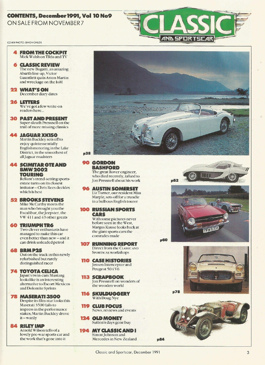 Reviews CLASSIC & SPORTSCAR 1991 DEC - XK150, TR6, 2002, SCIMITAR, 3500 GT