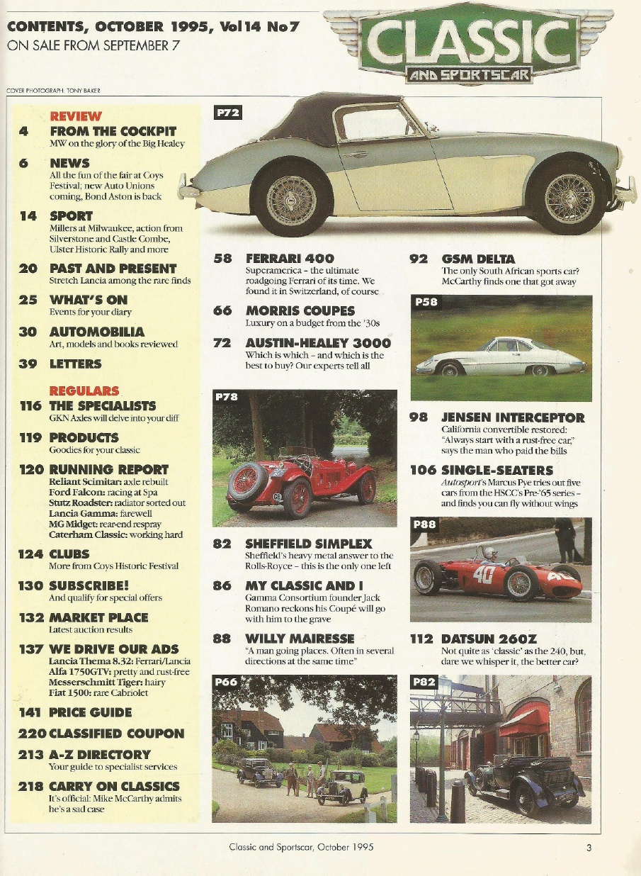 Reviews CLASSIC & SPORTSCAR 1995 OCT - A-H 3000, SUPERAMERICA, GSM DELTA