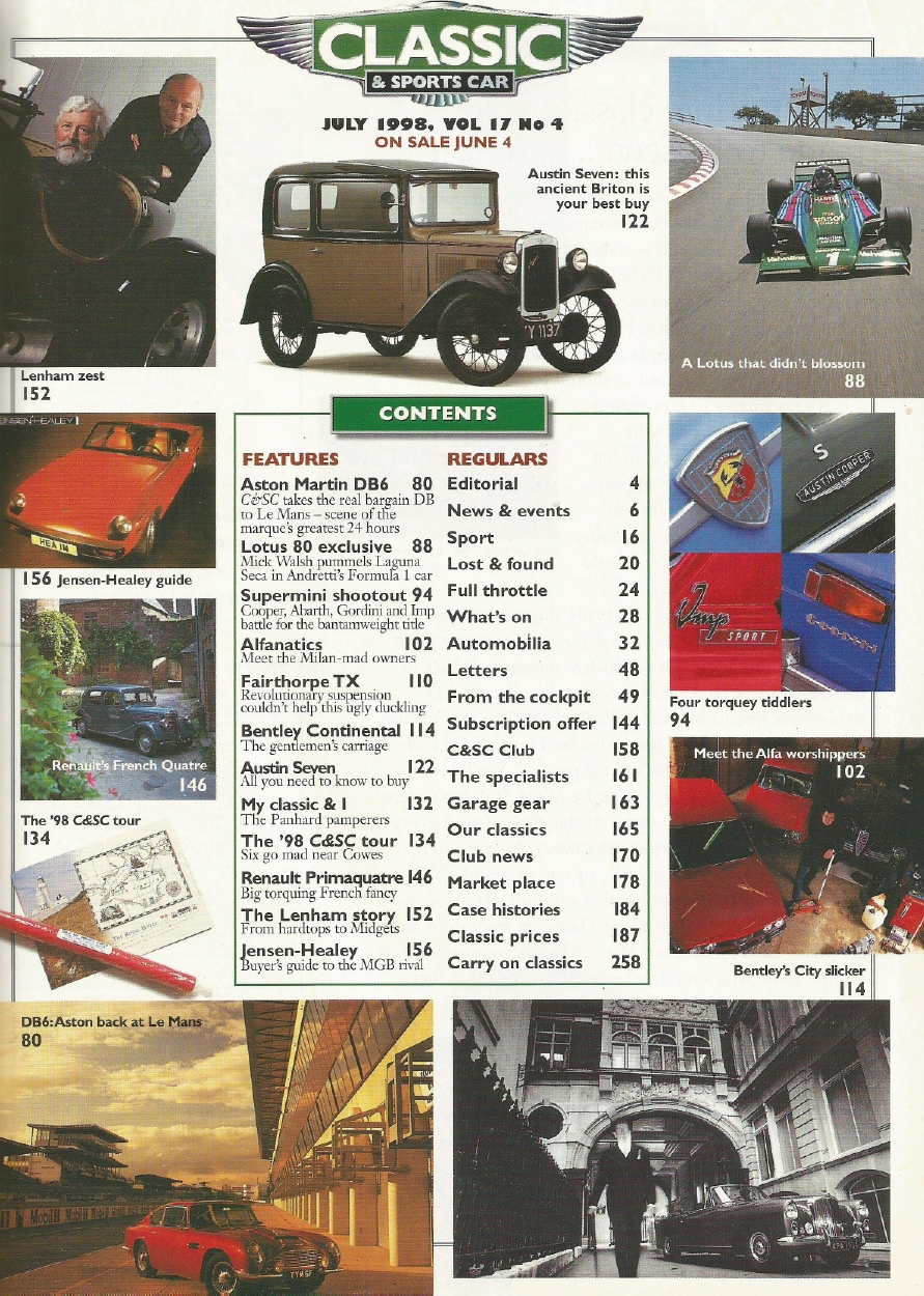 Reviews CLASSIC & SPORTSCAR 1998 JULY - POCKET ROCKETS, DB6, JENSEN-HEALEY