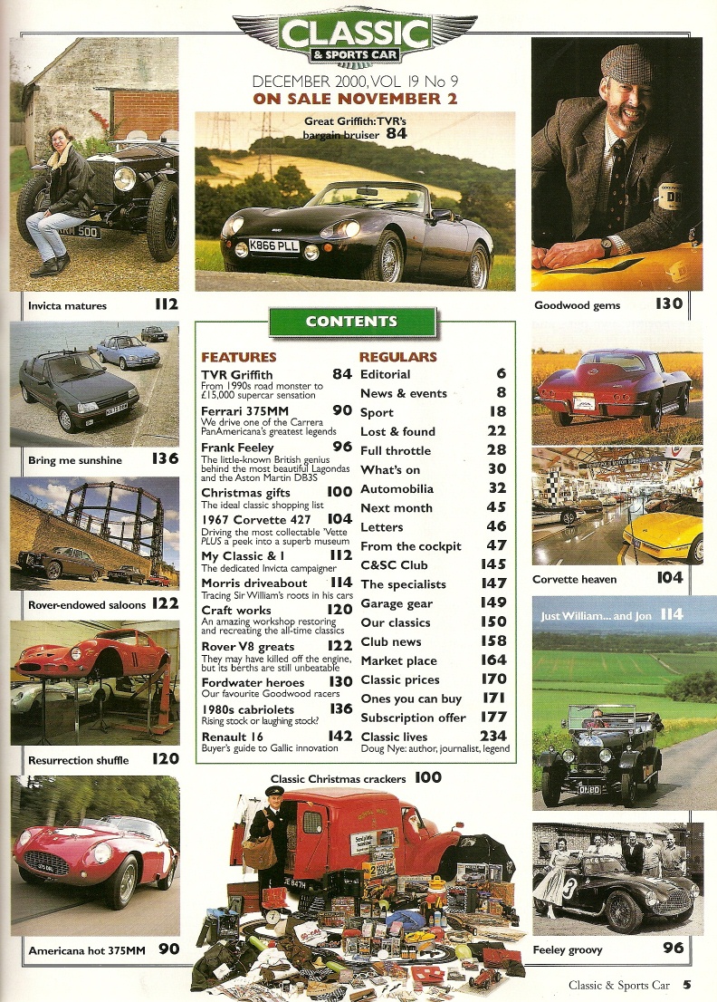 Reviews CLASSIC & SPORTSCAR 2000 DEC - 427 VETTE, FERRARI 375MM, GRIFFITH