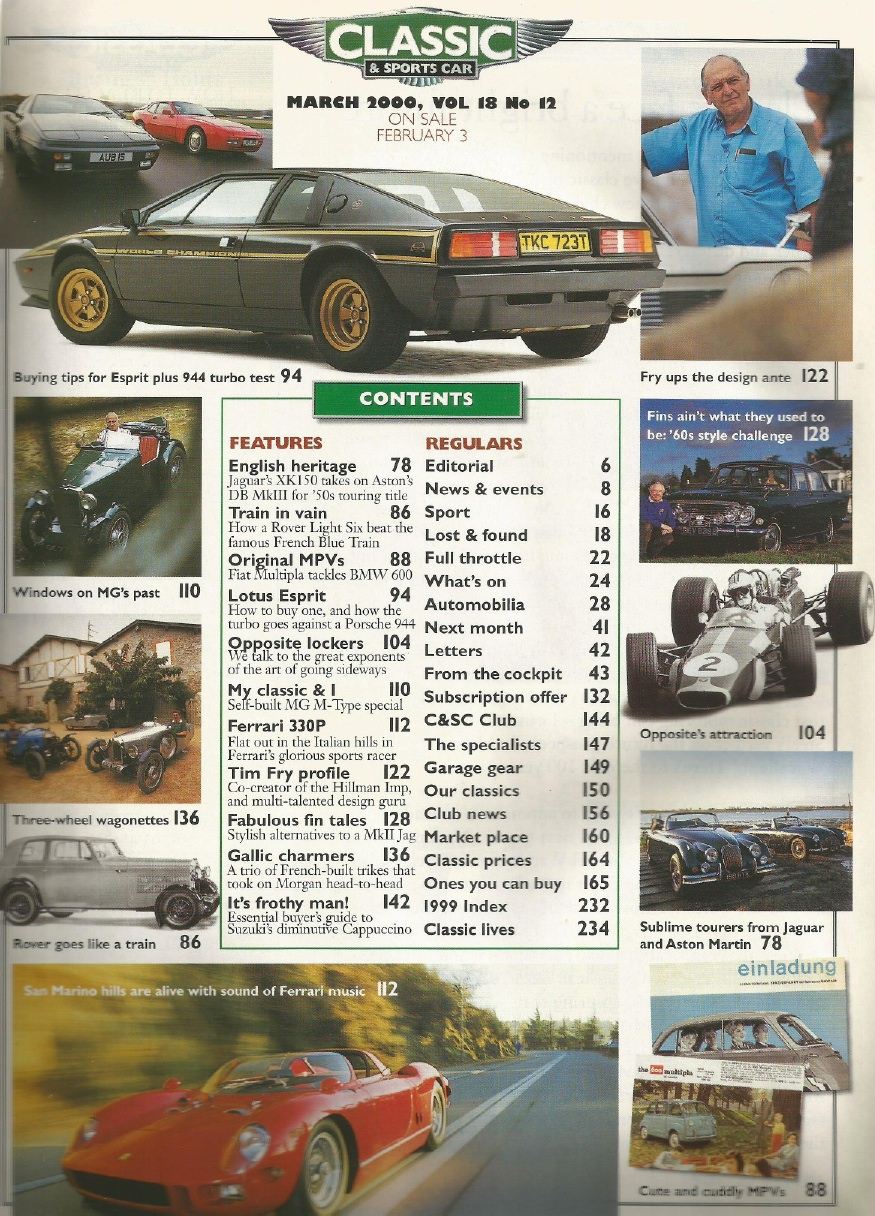 Reviews CLASSIC & SPORTSCAR 2000 MAR - 330P, ESPRIT, XK150 v DB Mk III