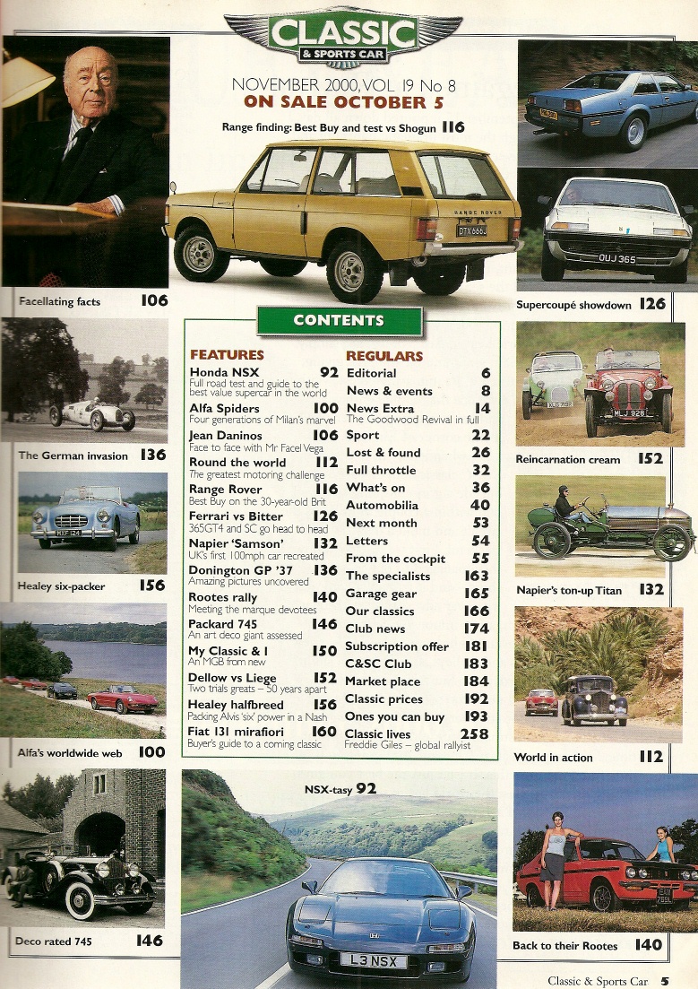 Reviews CLASSIC & SPORTSCAR 2000 NOV - NSX, NASH-HEALEY, DELLOW, LIEGE