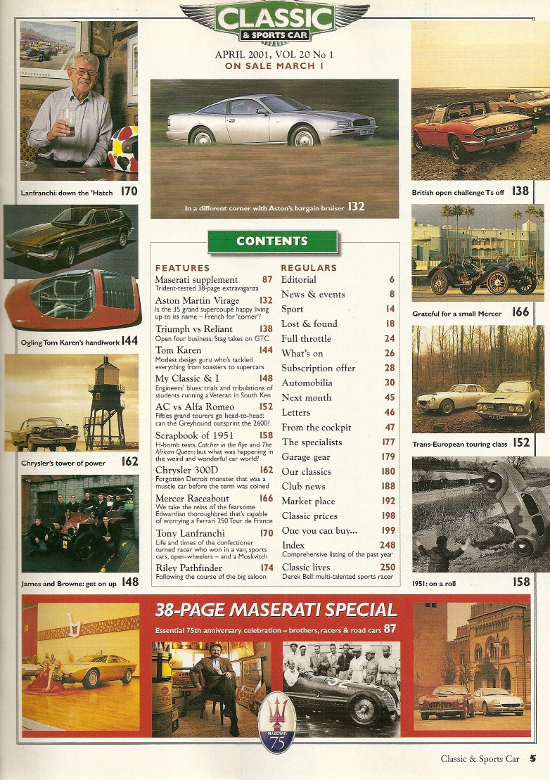 Reviews CLASSIC & SPORTSCAR 2001 APR - MASERATI Spcl, 300D, SCIMITAR v STAG