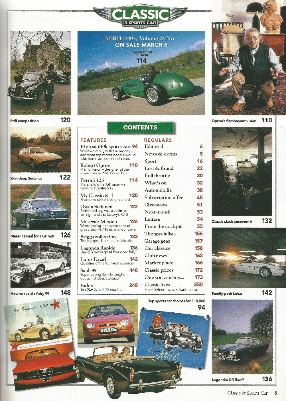 Reviews CLASSIC & SPORTSCAR 2003 APR - FERRARI 125, SAAB 99, EXCEL, OPRON