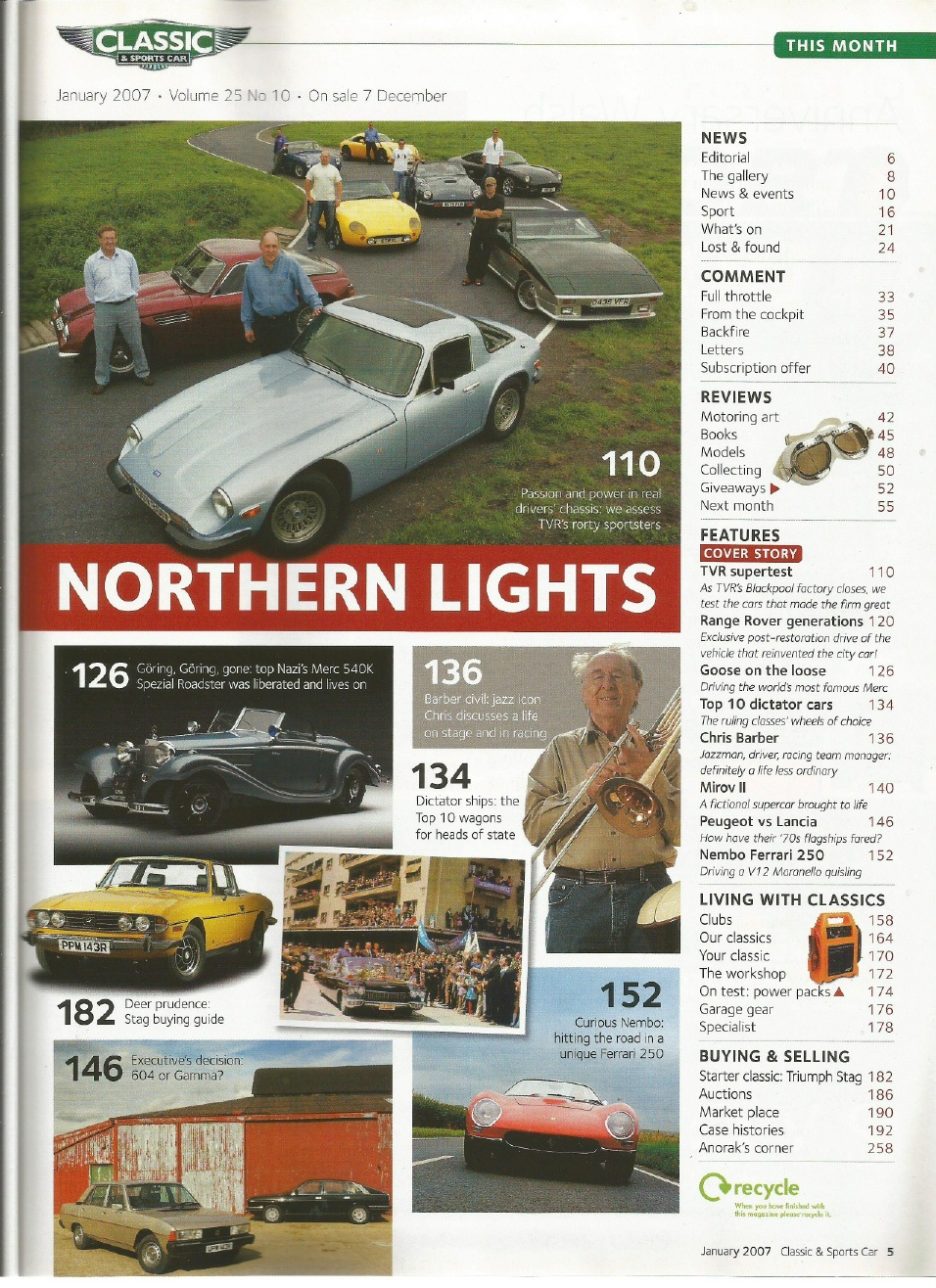 Reviews CLASSIC & SPORTSCAR 2007 JAN - TVR Spl, STAG, 540K, NEMBO 250