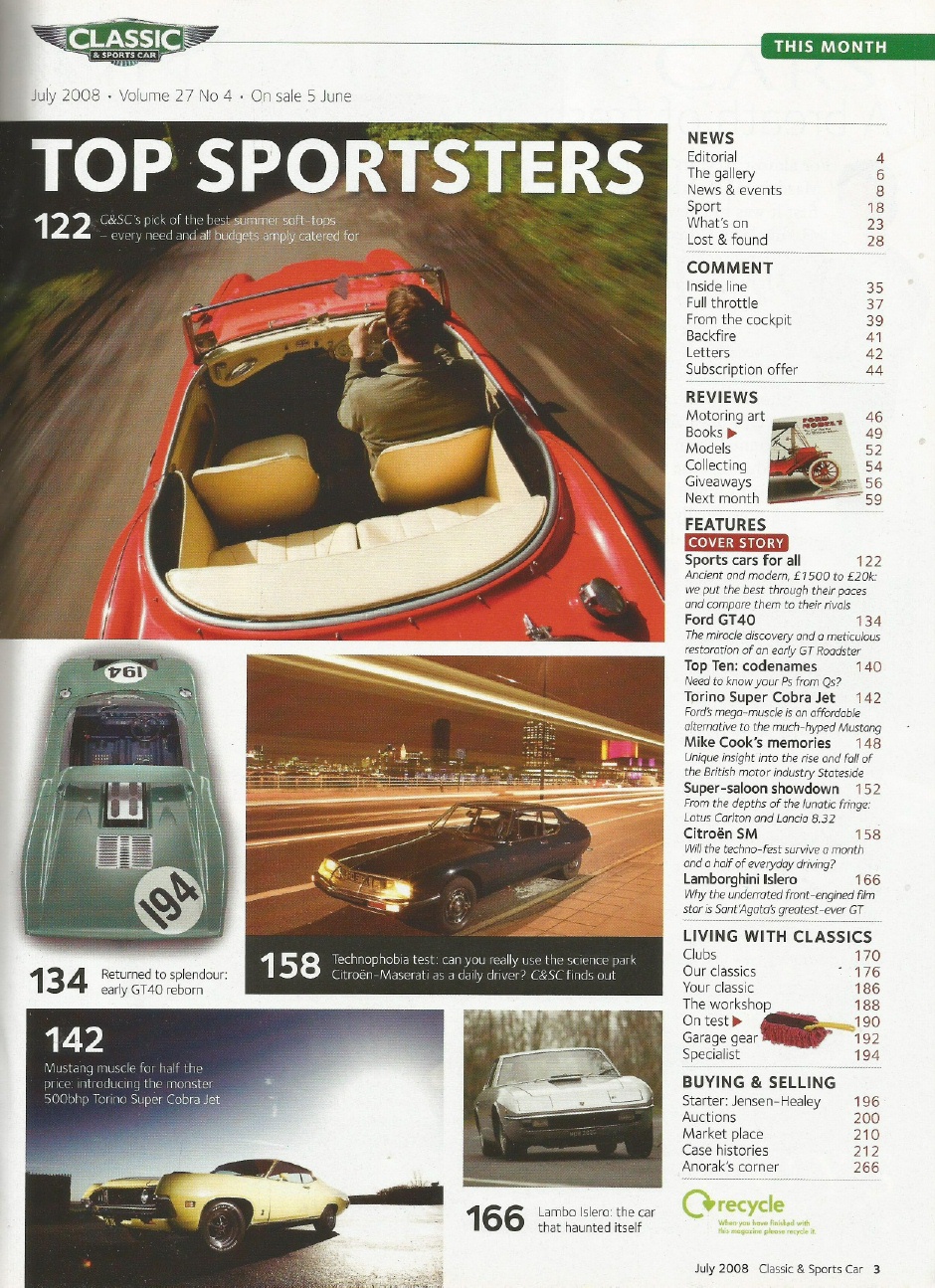 Reviews CLASSIC & SPORTSCAR 2008 JULY - 429SCJ, GT40 ROADSTER, ISLERO
